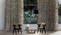 Giada, tendaggio decorativo in 66% CO 24% PL 10% LI proposto da CTA®, è un fil coupé con un disegno grafico che crea un’alternanza di vuoti e di pieni con quattro nuances di colori naturali e terra, in altezza 300/305 cm.-