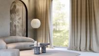 Il tessuto Otranto è un 100% lino, il cui aspetto ricorda la tela di juta, con una trama morbida e strutturata. Dal bianco naturale al sabbia, dal colore lino al tortora, sei nuances ispirate alle cromie naturali. Realizzato in altezza 298/305 cm.