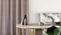 Palazzo Reale è un elegante tessuto jacquard, con una morbidissima fibra di bambù che aggiunge una luminosità simile alla seta, caratterizzato da un intreccio di trama e ordito che magistralmente anima la superficie, in composizione 46%PL 36% BA 18%LI. Realizzato in altezza 310/315 cm, in cinque varianti di colore: naturale, beige, corda, cammello e terra.