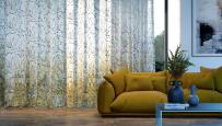 Primavera is a dévoré curtain with print, in 75% VI 25% PL, with ethnic patterns and color combinations that reproduce a symmetrical and lively visual effect. Offered in 3 color nuances, such as natural, yellow ocre and cocoa, it is available in 305/310 cm with lead.